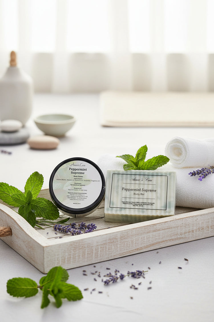 Refresh your skin and awaken your senses with Peppermint Supreme, a luxurious goat’s milk skincare bar crafted to cleanse, hydrate, and invigorate. Designed for all skin types, this nourishing bar delivers deep moisture, gentle exfoliation, and lasting softness with every use—perfect for daily cleansing or a refreshing reset.